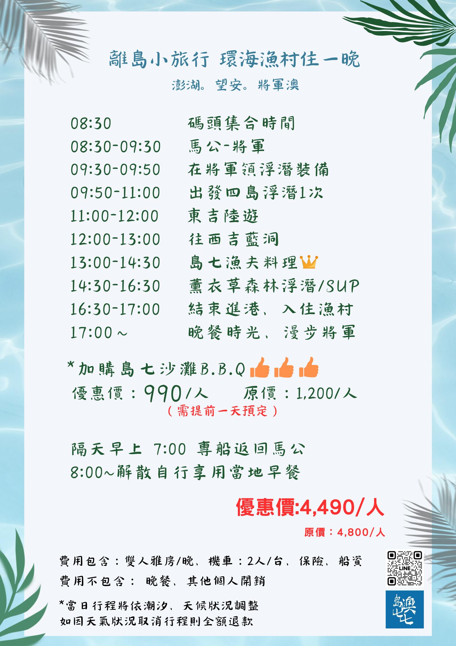 浮潛+陸遊+西吉藍洞+體驗滑SUP+島七沙灘B.B.Q (行程會依當天氣候、潮汐做調整)